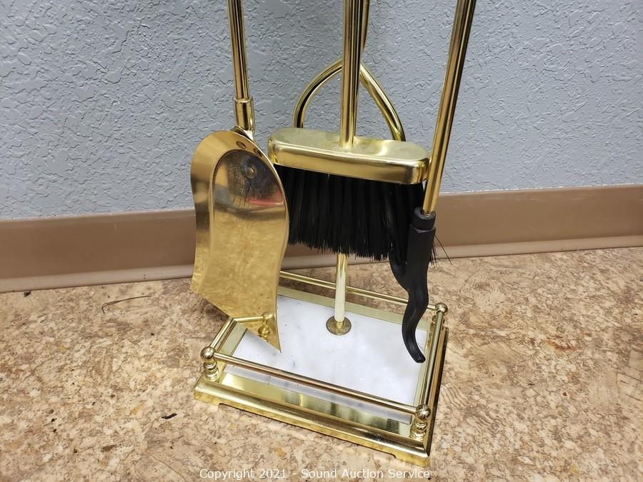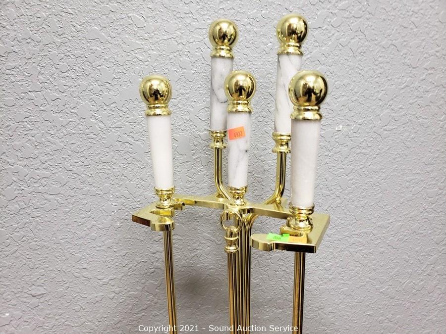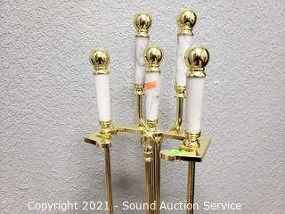 Lot #0366: 5pc Brass & Marble Fire Poker Set