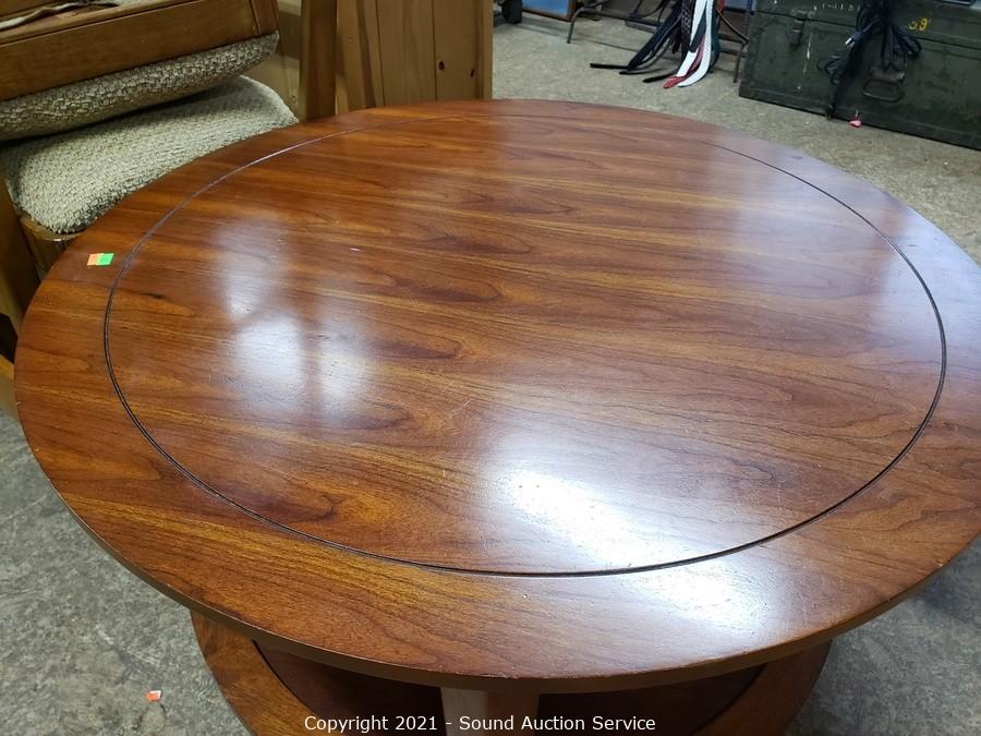 Lot Details: 18" H x 34" Dia. Some minor wear to finish, overall great condition.