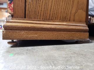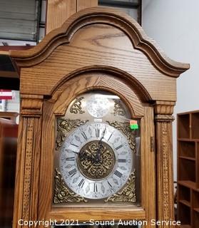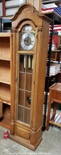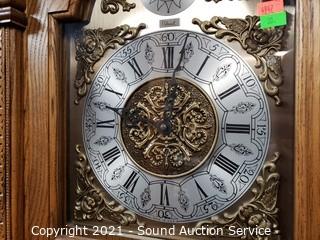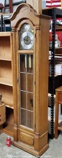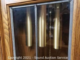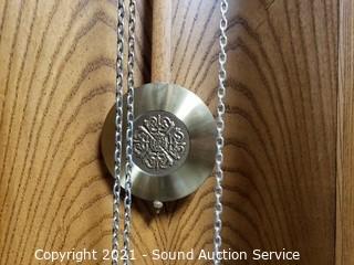 Lot Details: Pendulum not sitting properly on it's rest, needs some maintenance and it would probably work. In great condition cosmetically. 73" x 16.5" x 8.5".