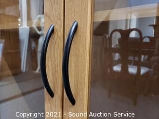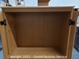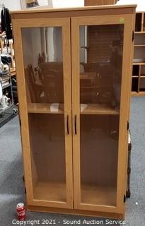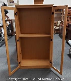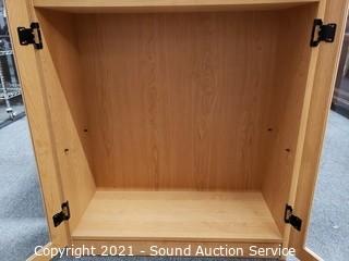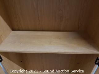 Lot Details: 60.5" x 31.5" x 12.5". Only one fixed shelf, has peg holes for other shelves, does not come with them. In good condition.