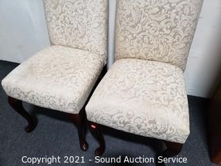 Lot #0004: Pair of Bombay Company Ivory Cabriole Leg Chairs