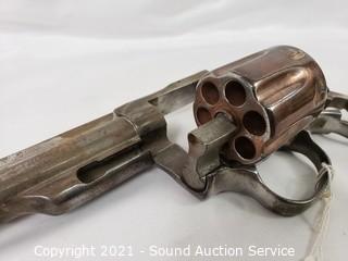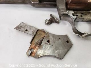 Lot Details: 5-1/4" barrel. Parts, repair, no hammer, trigger mechanism, grips, various wear to the finish, otherwise unknown condition. Serial 79597J. As is. Preview of these items by appointment only with South Sound Guns Lacey WA. In accordance with U.S. law, this lot must either be picked up at South Sound Guns Lacey, Washington or shipped to a U.S. licensed firearms dealer (FFL) of the buyer's designation. Handguns will be shipped via USPS Priority Mail; shotguns & rifles will be shipped according to South Sound Guns standards and in accordance with U.S. laws. All shipping and handling charges will be paid by the buyer and billed by South Sound Guns. All transfer fees will be paid by the buyer at South Sound Guns at the price of $20 per item. Any and all waiting periods will be determined by South Sound Guns. Buyers must present copy of Sound Auction paid invoice.