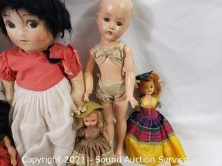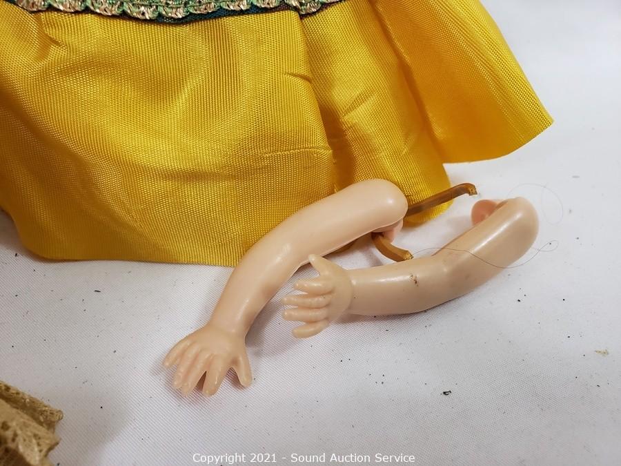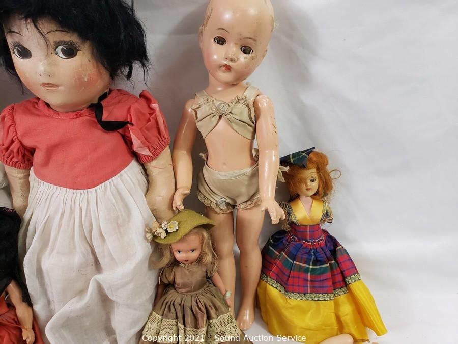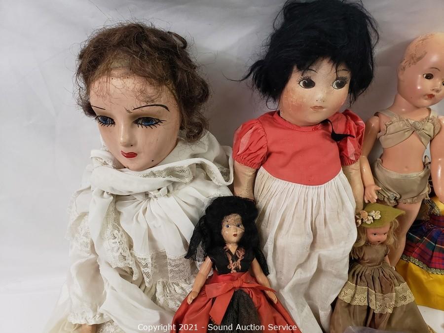 Lot Details: 4 are complete. Look hand painted, various wear, some dings. Approx. 6" to 25" tall. Some hair, some parts/piece from 2 broken ones.