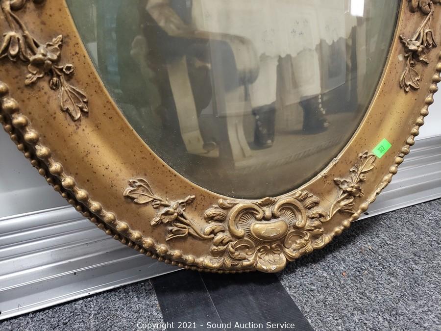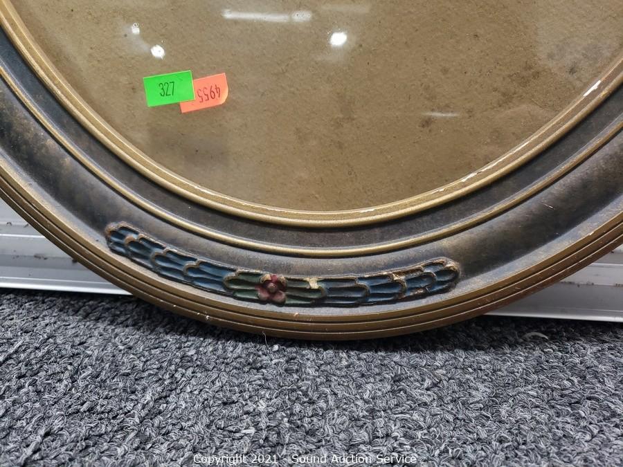 Lot #0327: Vtg. Bubble Glass Portrait & Oval Frame w/Glass