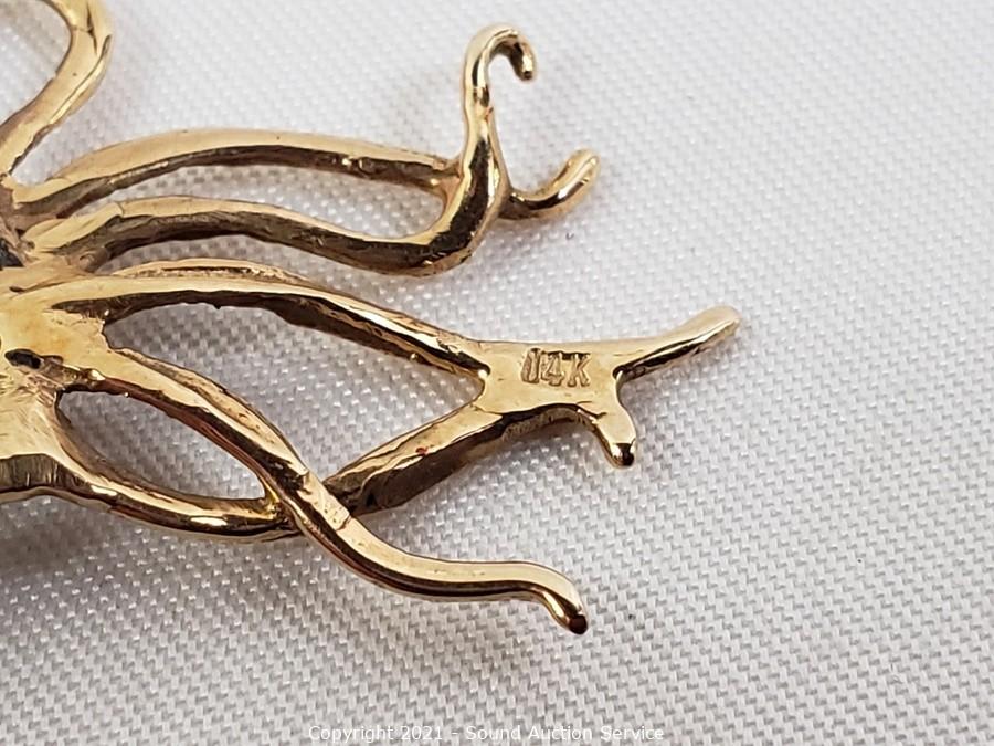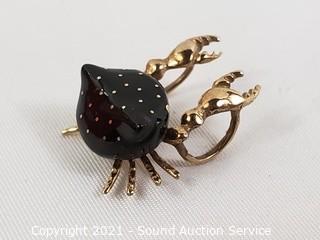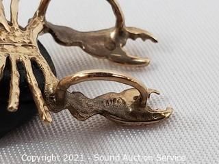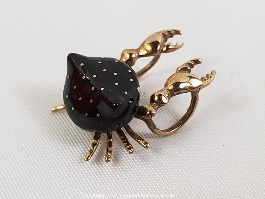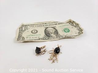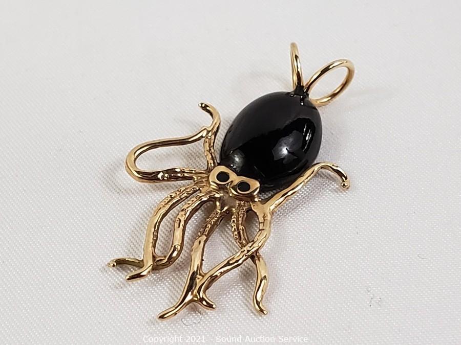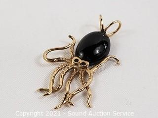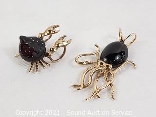 Lot #0417: 14k Gold & Black Stone Octopus & Crab Pendants
