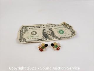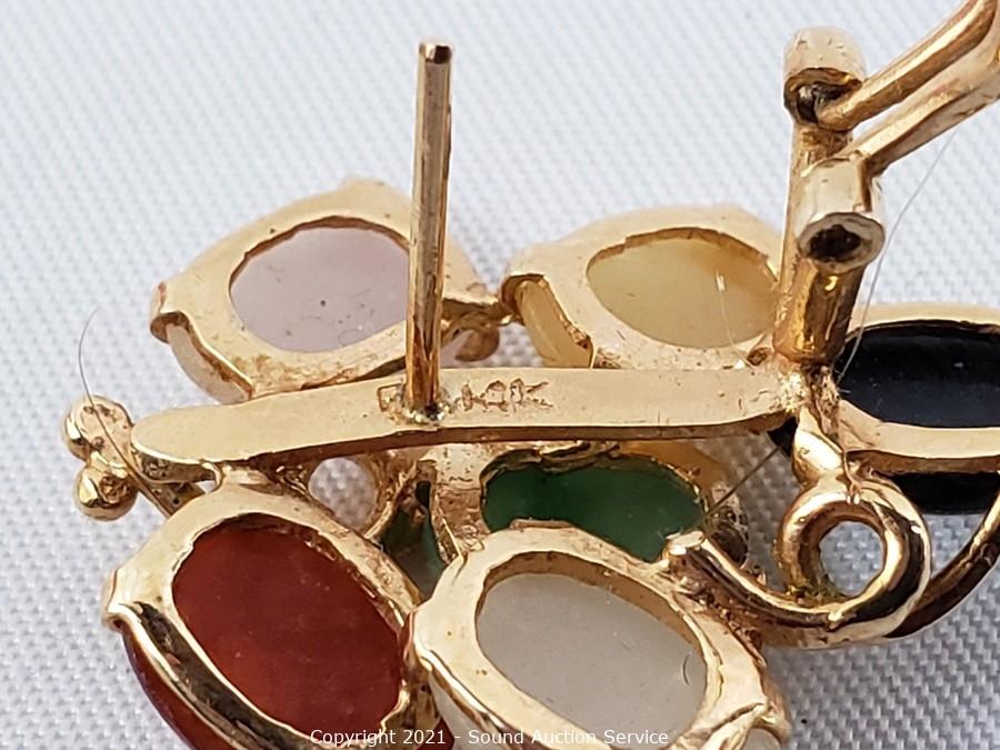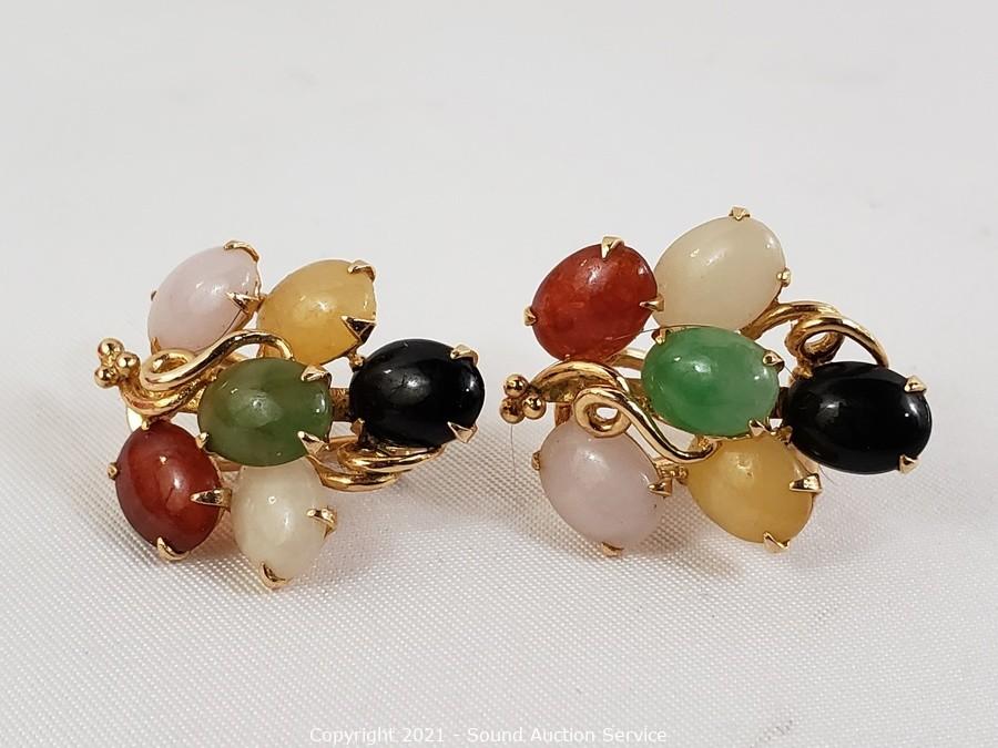 Lot #0382: 14k Gold & Multi Stone Earring Set
