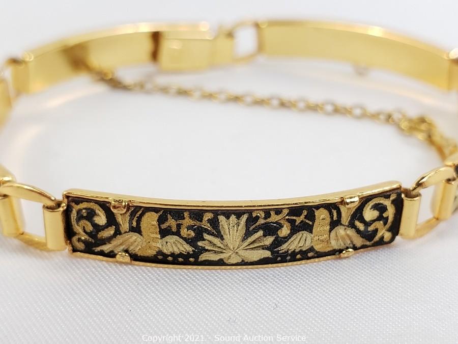 Lot #0395: 2 Vintage Damascene 6" Bracelets