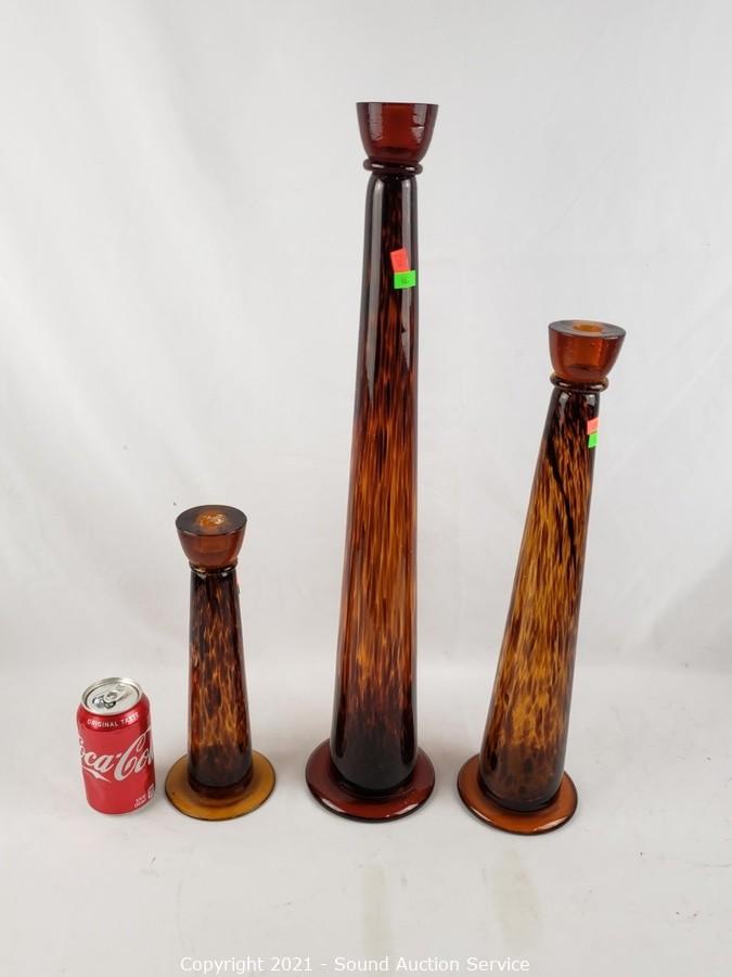 Lot #0046: 3pc Art Glass Graduating Candle Holders