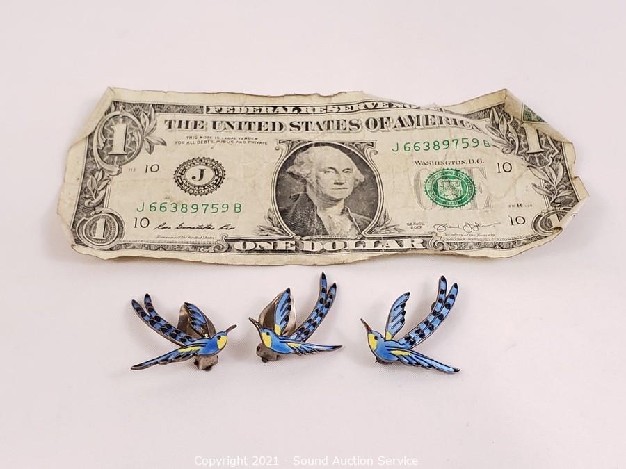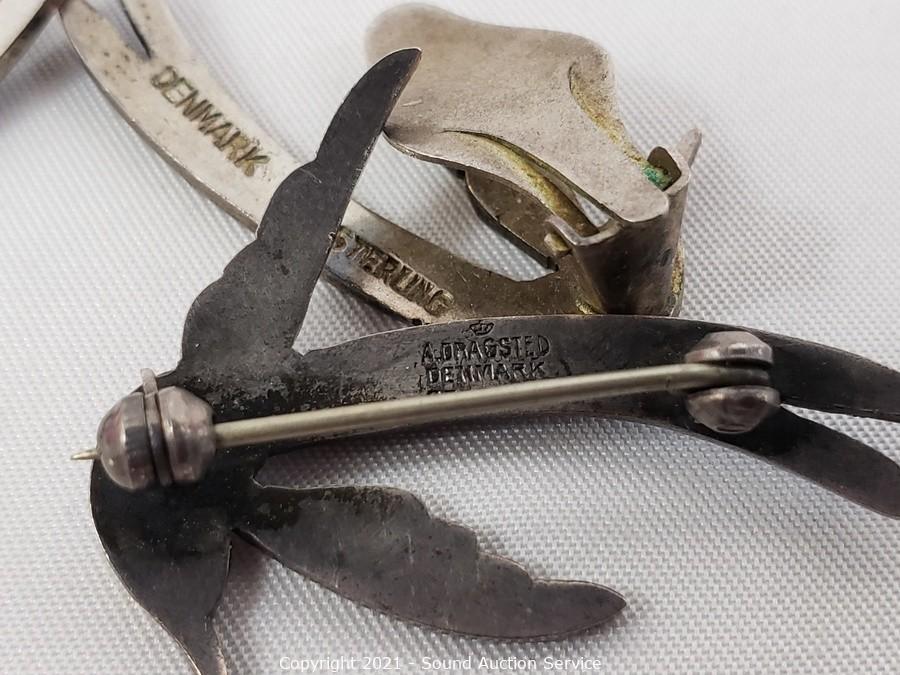 Lot #0421: A. Dragsted Sterling Enamel Pin & Clips