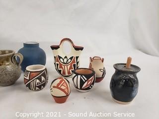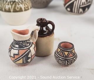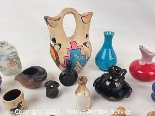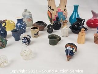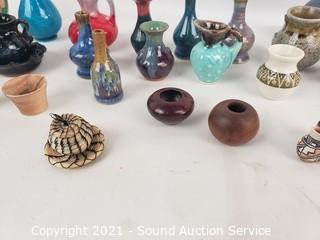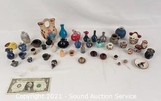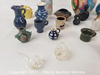 Lot #0130: Assorted Mini Ceramic, Pottery Vases, Jugs, Snuffs