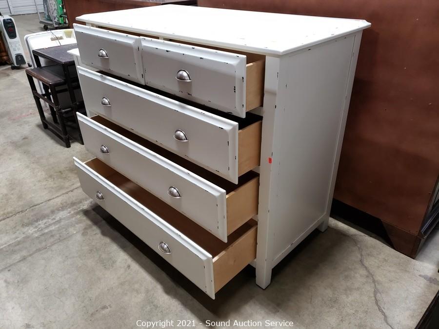 Lot #0013: Shabby Chic 5-Drawer Distressed Finish Chest