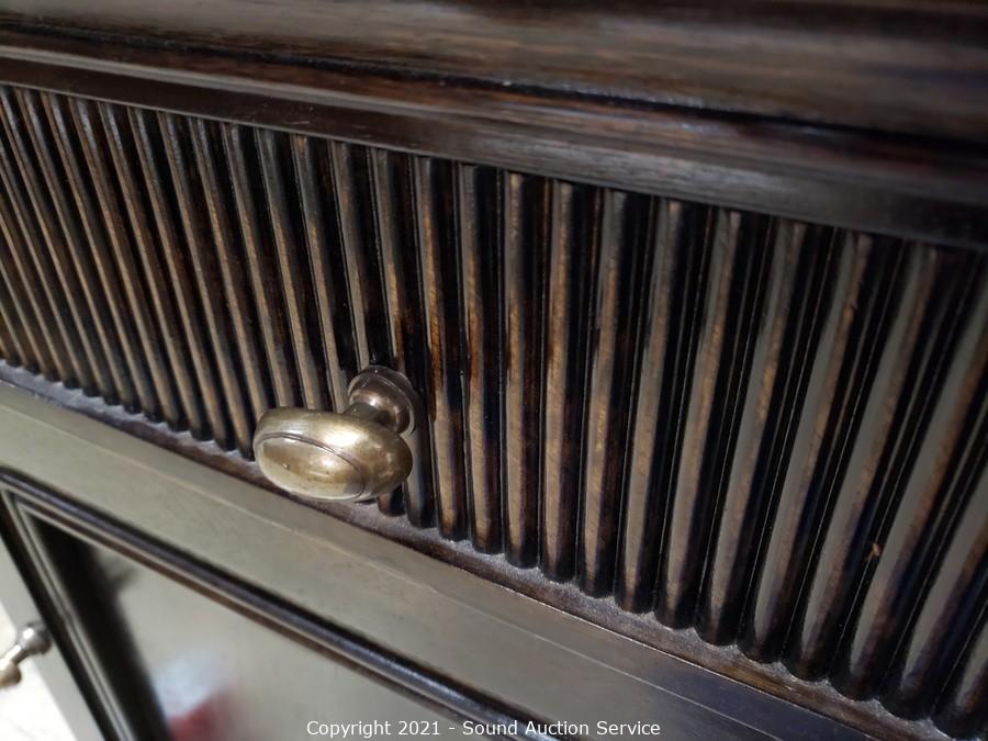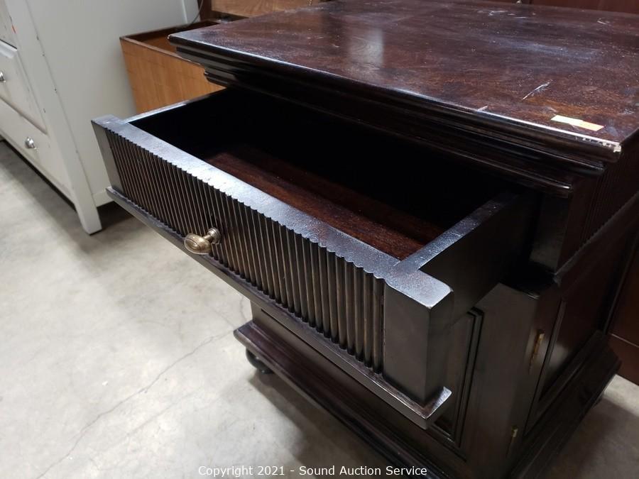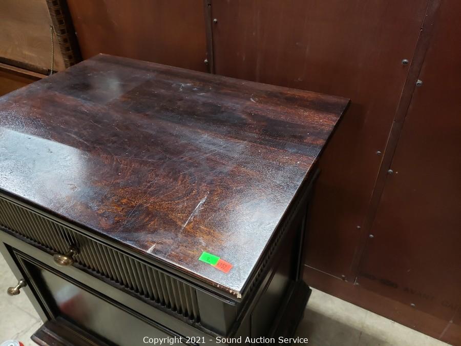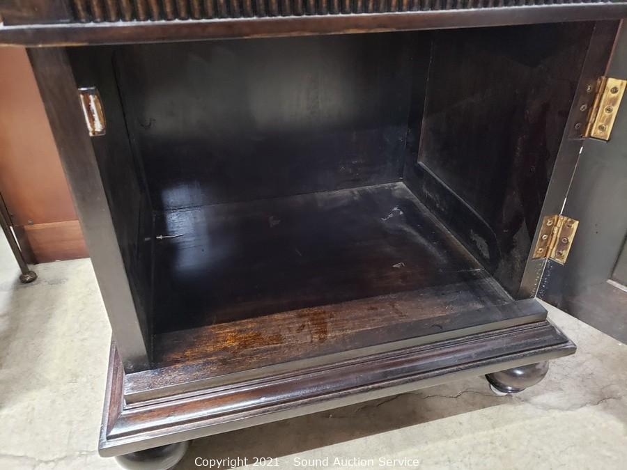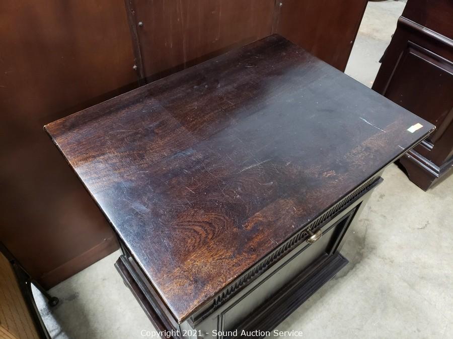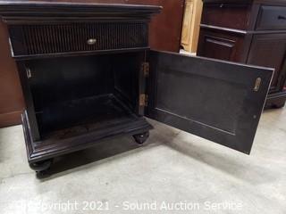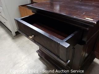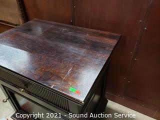 Lot #0009: Vtg. Dark Stained Single Drawer Cabinet