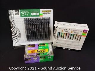 Lot #0184: Zebra & Mildliner Pens w/ 6 Rolls Scotch Tape