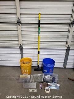 Lot #0054: (2) 5 Gallon Buckets w/Various Drywall Tools