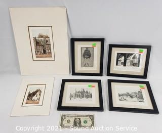 Lot #0160: 5pc Signed Ltd. Architectural Lithograph Artwork