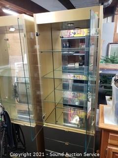 Lot #0288: Gold & Mirrored Lighted Curio Cabinet