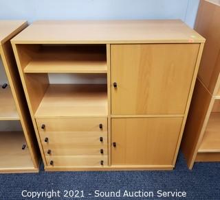 Lot #0050: Modern Maple Finish 4 Drawer Cabinet