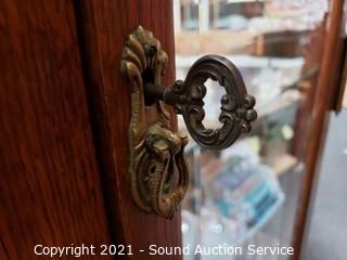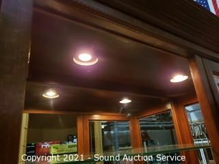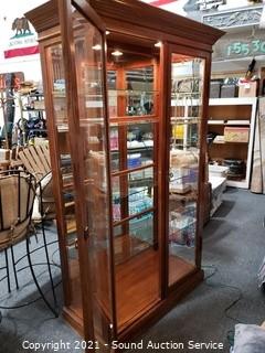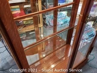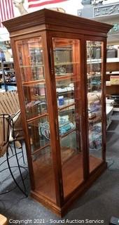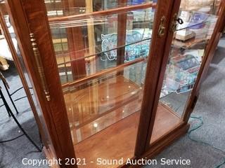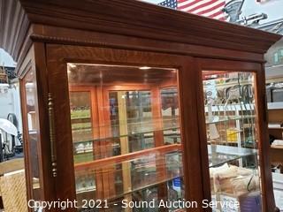 Lot #0136: Oak Lighted Mirrored Back & Glass Shelf Curio
