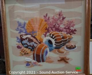 Lot #0251: Signed Blue Ritten Bird & Embroidered Artwork