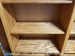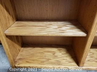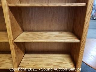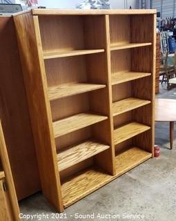 Lot #0030: 5-Tier Oak Side-by-Side Bookshelf