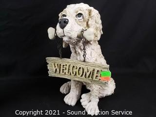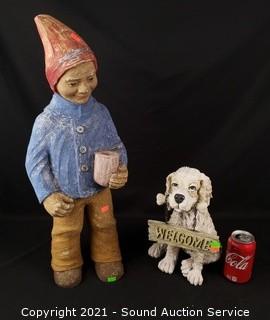 Lot #0123: Concrete Man & Composite Dog Entryway Statuaries