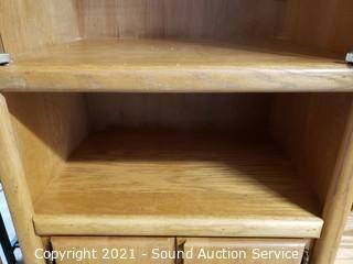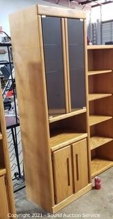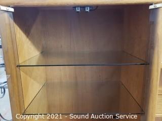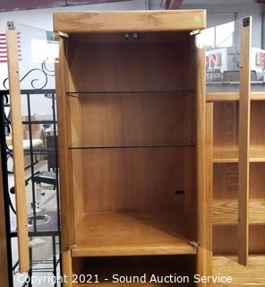 Lot #0029: Oak Lighted Glass Front Narrow Cabinet