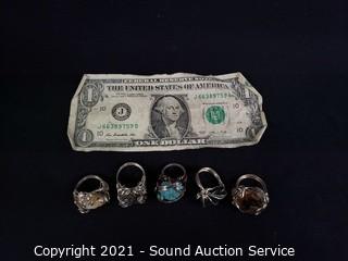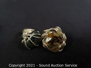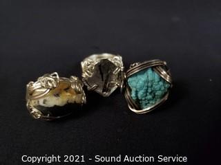 Lot #0462: 5 Silver Wrapped Handcrafted Stone Rings
