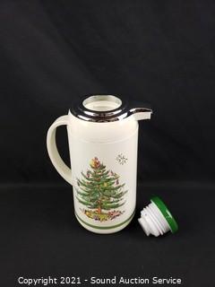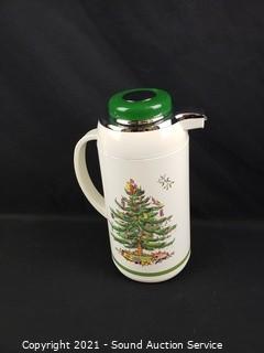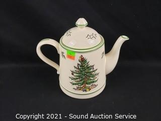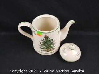 Lot #0009: 5pc Spode Christmas Tree Carafe, Teapot & Utensils