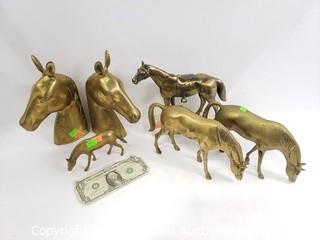 Lot #0059: 6pc Brass Horse Figures & Book Ends