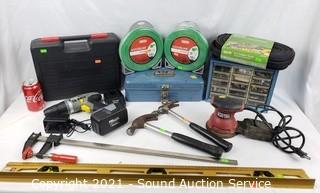Lot #0048: Assorted Tools, Hardware, Soaker Hose