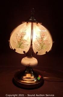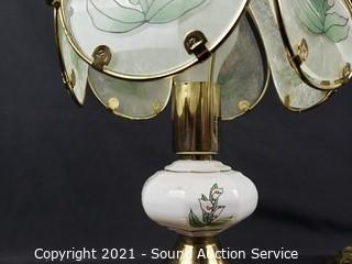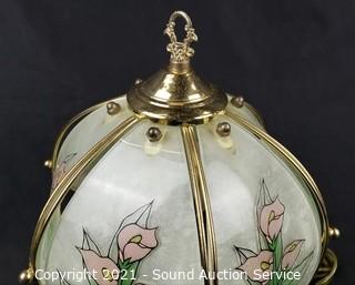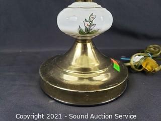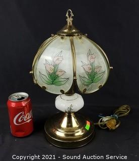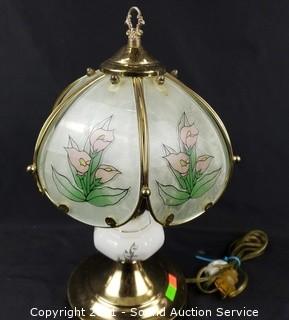 Lot #0032: Hand Painted Glass & Brass Table Lamp