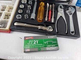 486 Lot including; Like New LG Digital Refrigerator Freezer, Samsung Black Stainless Dishwasher, Spode Christmas China, Assorted Tools & Hardware, Electronics' Components (microchips, capacitors, resistors etc), Vintage Torison Balance Co. Scales, 1881 Rogers Stainless Flatware w/Chest, Vtg MA Hadley Pottery Dishes, Table & Service Ware, Cal Ripken Jr. Signed Baseball, Vtg. Cameras & Accessories, Coins & Currency, Capodimonte & Andrea by Sadek Fine Porcelain Flowers, Tons of Pipka Limited Santa Sculptures, Vizio 32" E32C1 LED 1080p Smart TV, Gold, Silver, Damascene, Great Falls Metalworks, Bone Carved Stone Set & Fashion Jewelry, Midea Chest White Chest Freezer, Flat File Cabinet, Star Trek TV Series DVD Box Sets, & So Much More!!!