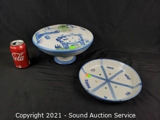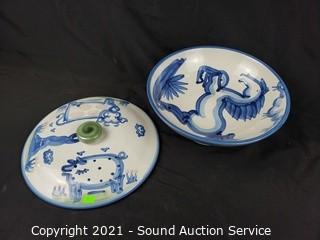 Lot #0037: Vtg MA Hadley Pottery Covered Dish & Bowl