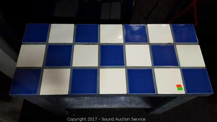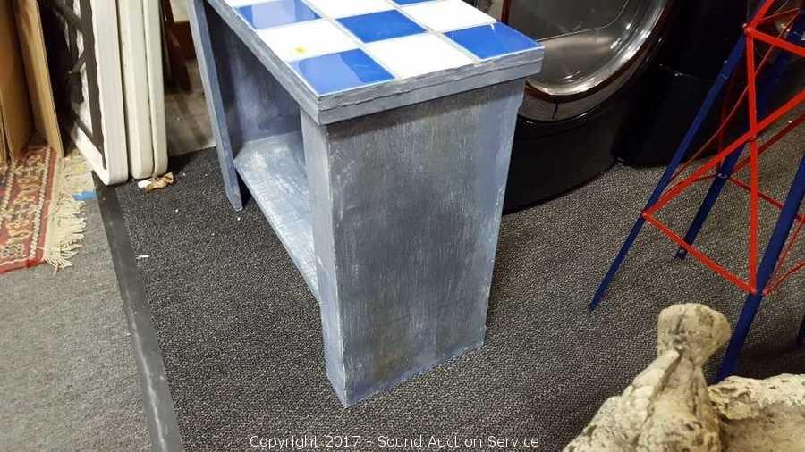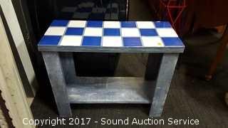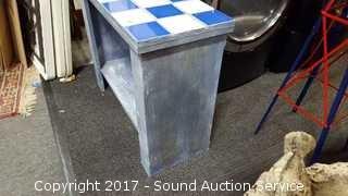Lot #0076: Adorable Solid Wood Painted Tile Top Table