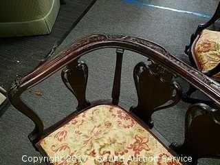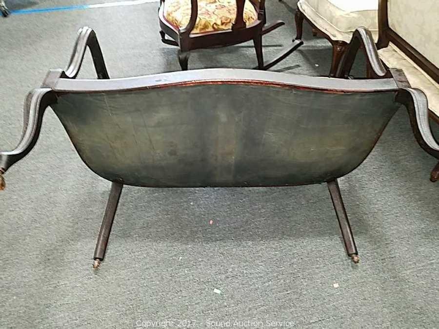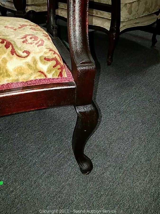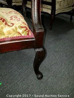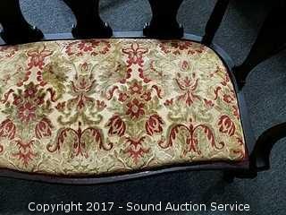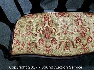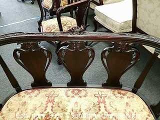 Consignors mother purchased in 1950's from a Tennessee Antebellum Mansion Estate sale. On wooden castors, padded. Elegant, ornate carving. Ornately carved lyre back. Appear to have been re-upholstered at some point in it's life.