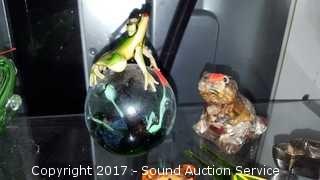 Also comes with metal Danish Dansk aluminum frog figurine and an epoxied stone toad.