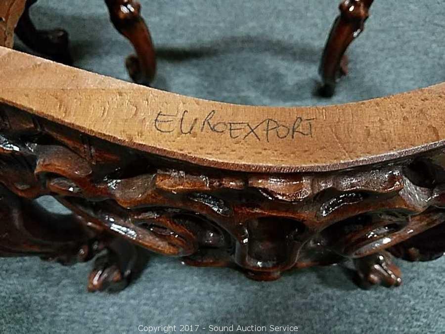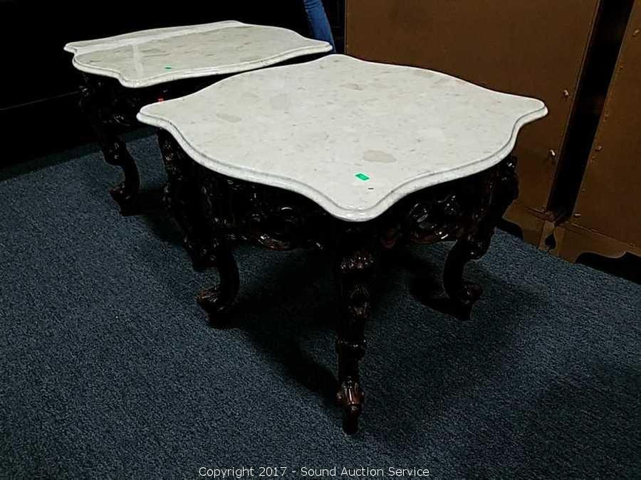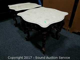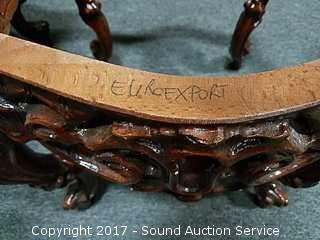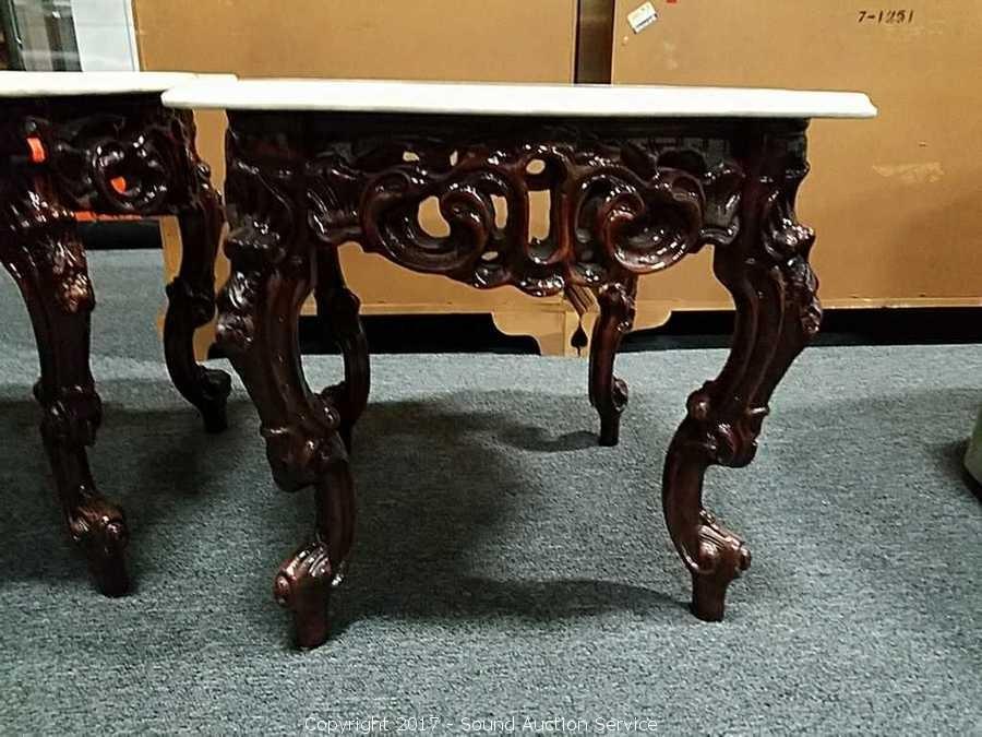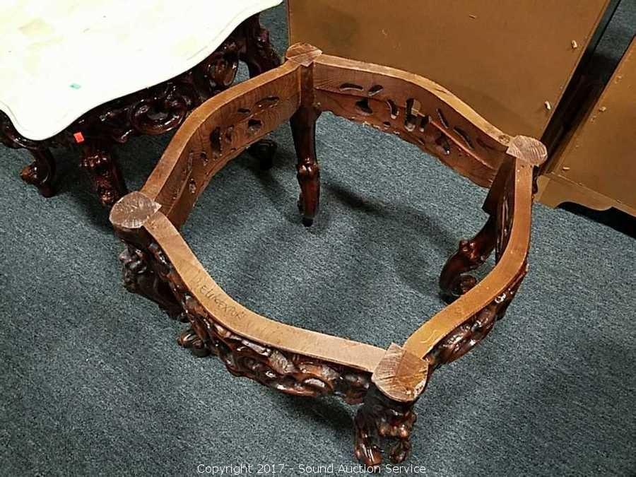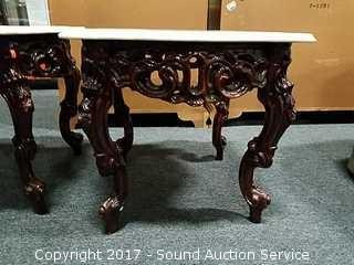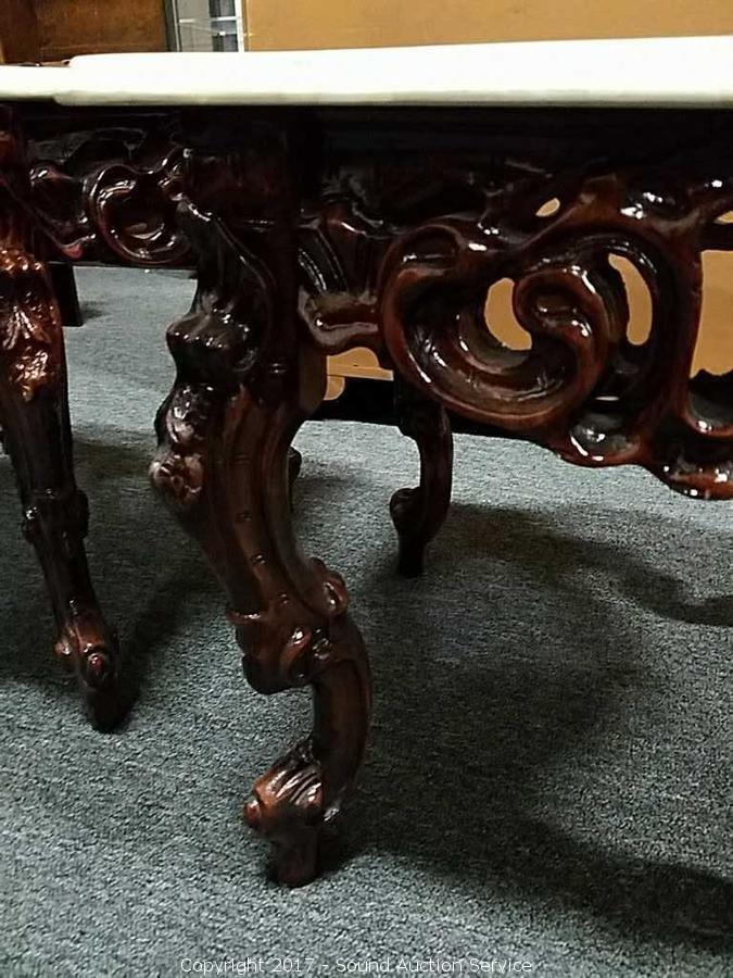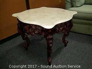 Lot #0149: Ornate Marble Top Carved Mahogany Side Table