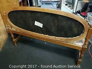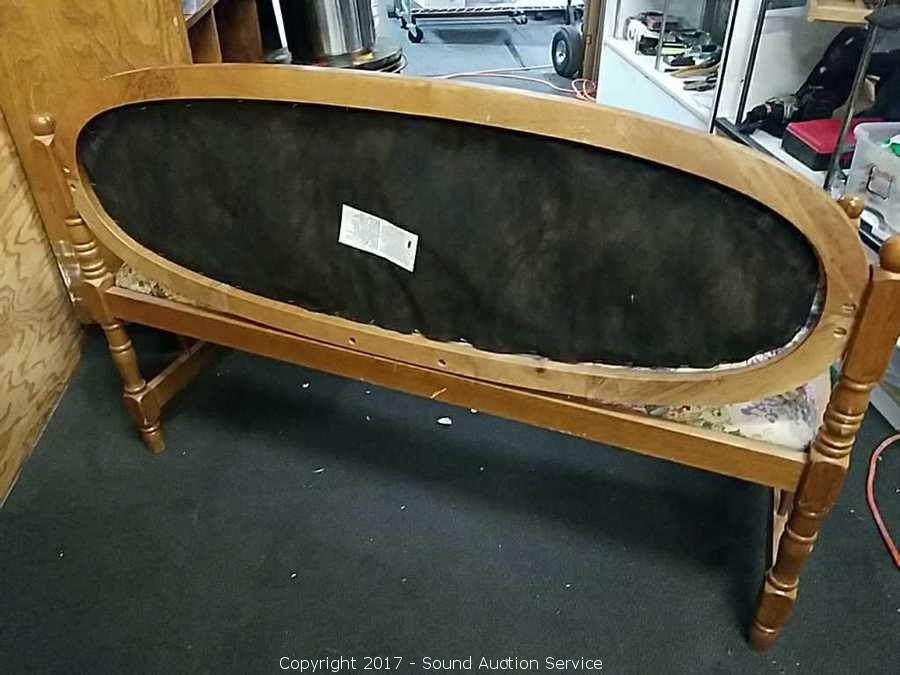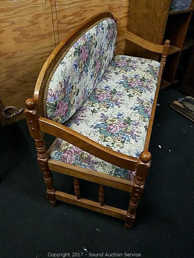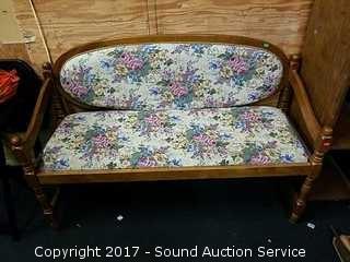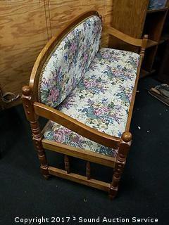 Lot #0170: Solid Oak Floral Upholstered Entryway Bench