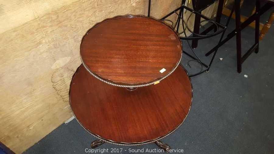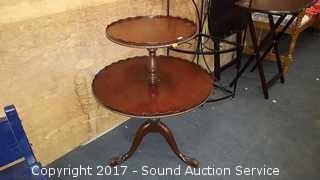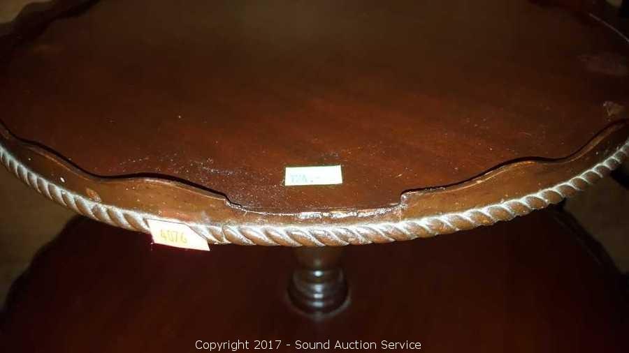 Lot #0124: Vtg. Two Tier Mahogany Piecrust Table