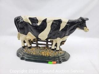 Lot #0207: 2 Hand Painted Cast Iron Cow Door Stops