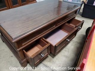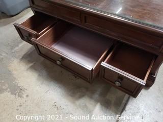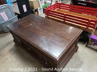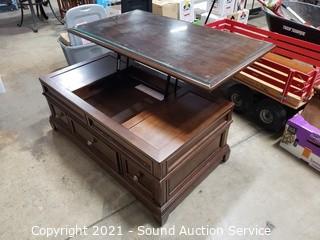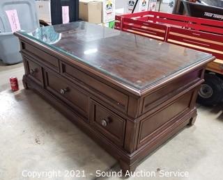 Lot #0296: 3 Drawer Glass Top Mechanical Lift Top Coffee Table
