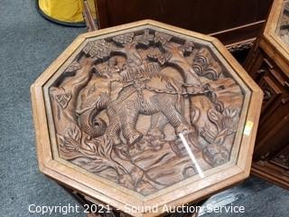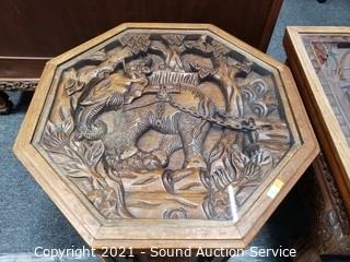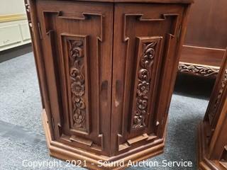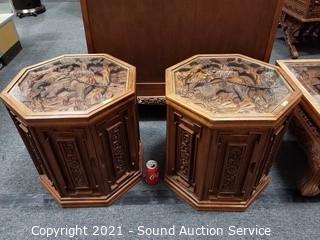 Lot #0009: 2 Ornate Carved Camphor? Wood Thai Side Tables