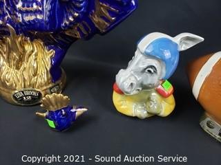 430 Lots including; Rifles, Loredano Rosin Calcedonia Murano Horse Sculpture, Frederic Remington Bronze Sculpture, Vtg. Redwing Crocks 5-20 Gallon, Antique Rustic Staple-National Excelsior Stove, Swarovski Crystal Sculptures, Various Crystal & Clear Glassware, Vtg. Jim Beam Decanters, Large Rustic Coffee Mill, Ornate Carved Thai Camphor? Wood Furniture, Vtg. Pendulum Grandfather, Mantel & Wall Clocks, Bear Rug, Vtg. Fishing Reels, Vtg. Cameras & Accessories, Assorted Vtg. Fine China (Spode, Noritake, Franciscan, Limoges, Lenox & More), Vtg. Fenton Daisy Fern Pattern Glass Shade Lamp, Assorted Art Glass, Assorted Crystal Ware (Waterford, Rosenthal, Shannon & more), Silver, Gold & Fashion Jewelry, Assorted Lapel Pins, Vtg. Glassware (Uranium, Amethyst, Black, Clear), Art Pottery, Jade Trinkets, Some Great Tool Lots, Lenox Christmas Tree w/Ornaments & CoA's, Samsung 40" 1080p LCD Backlit TV w/Remote, Louis L'Amour Western Literature, Compact Refrigerators, Chest Freezer, Vtg. Waterfall Furniture, Antique Lincoln Telephone & Telegraph Co. Phone & So Much More!!!