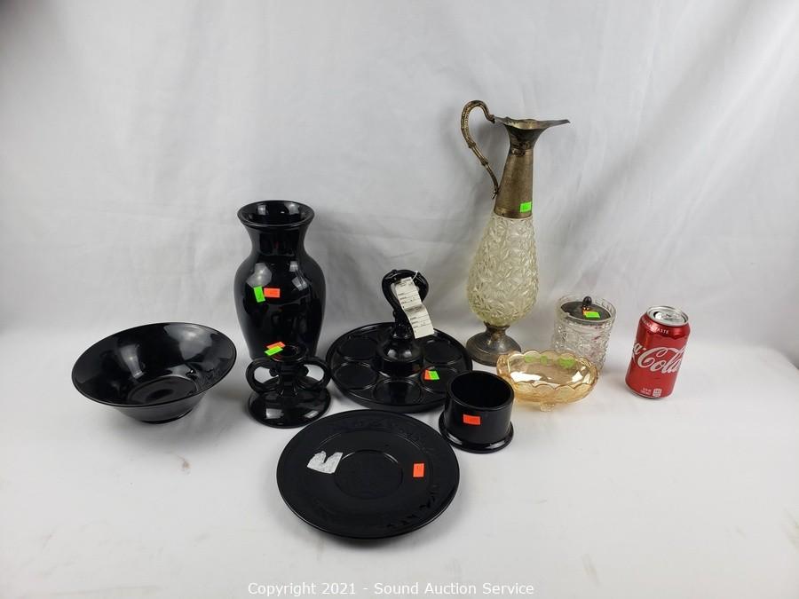Lot #0344: 9pc Vtg. Amethyst, Black & Clear Glassware