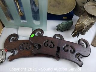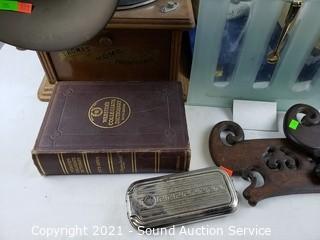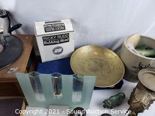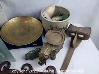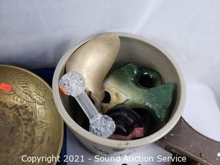 430 Lots including; Rifles, Loredano Rosin Calcedonia Murano Horse Sculpture, Frederic Remington Bronze Sculpture, Vtg. Redwing Crocks 5-20 Gallon, Antique Rustic Staple-National Excelsior Stove, Swarovski Crystal Sculptures, Various Crystal & Clear Glassware, Vtg. Jim Beam Decanters, Large Rustic Coffee Mill, Ornate Carved Thai Camphor? Wood Furniture, Vtg. Pendulum Grandfather, Mantel & Wall Clocks, Bear Rug, Vtg. Fishing Reels, Vtg. Cameras & Accessories, Assorted Vtg. Fine China (Spode, Noritake, Franciscan, Limoges, Lenox & More), Vtg. Fenton Daisy Fern Pattern Glass Shade Lamp, Assorted Art Glass, Assorted Crystal Ware (Waterford, Rosenthal, Shannon & more), Silver, Gold & Fashion Jewelry, Assorted Lapel Pins, Vtg. Glassware (Uranium, Amethyst, Black, Clear), Art Pottery, Jade Trinkets, Some Great Tool Lots, Lenox Christmas Tree w/Ornaments & CoA's, Samsung 40" 1080p LCD Backlit TV w/Remote, Louis L'Amour Western Literature, Compact Refrigerators, Chest Freezer, Vtg. Waterfall Furniture, Antique Lincoln Telephone & Telegraph Co. Phone & So Much More!!!