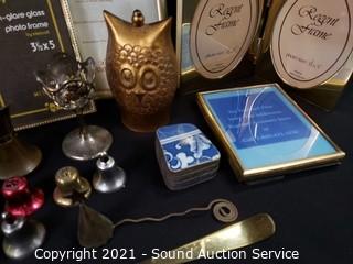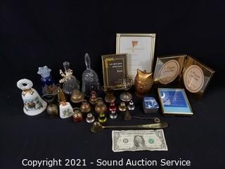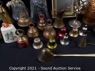 Lot #0074: Collection of Various Bells, Snuffer & Frames
