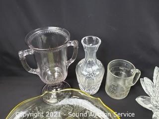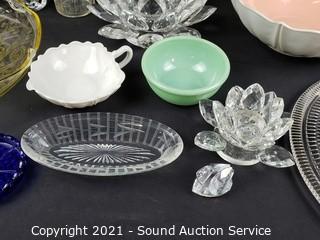 430 Lots including; Rifles, Loredano Rosin Calcedonia Murano Horse Sculpture, Frederic Remington Bronze Sculpture, Vtg. Redwing Crocks 5-20 Gallon, Antique Rustic Staple-National Excelsior Stove, Swarovski Crystal Sculptures, Various Crystal & Clear Glassware, Vtg. Jim Beam Decanters, Large Rustic Coffee Mill, Ornate Carved Thai Camphor? Wood Furniture, Vtg. Pendulum Grandfather, Mantel & Wall Clocks, Bear Rug, Vtg. Fishing Reels, Vtg. Cameras & Accessories, Assorted Vtg. Fine China (Spode, Noritake, Franciscan, Limoges, Lenox & More), Vtg. Fenton Daisy Fern Pattern Glass Shade Lamp, Assorted Art Glass, Assorted Crystal Ware (Waterford, Rosenthal, Shannon & more), Silver, Gold & Fashion Jewelry, Assorted Lapel Pins, Vtg. Glassware (Uranium, Amethyst, Black, Clear), Art Pottery, Jade Trinkets, Some Great Tool Lots, Lenox Christmas Tree w/Ornaments & CoA's, Samsung 40" 1080p LCD Backlit TV w/Remote, Louis L'Amour Western Literature, Compact Refrigerators, Chest Freezer, Vtg. Waterfall Furniture, Antique Lincoln Telephone & Telegraph Co. Phone & So Much More!!!