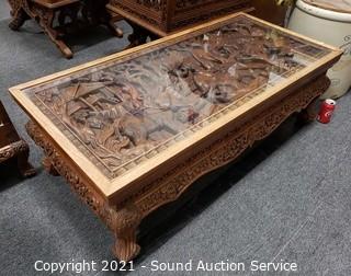 Lot #0008: Ornate Carved Camphor? Wood Thai Coffee Table