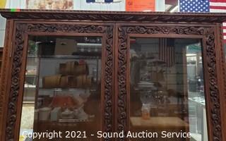 430 Lots including; Rifles, Loredano Rosin Calcedonia Murano Horse Sculpture, Frederic Remington Bronze Sculpture, Vtg. Redwing Crocks 5-20 Gallon, Antique Rustic Staple-National Excelsior Stove, Swarovski Crystal Sculptures, Various Crystal & Clear Glassware, Vtg. Jim Beam Decanters, Large Rustic Coffee Mill, Ornate Carved Thai Camphor? Wood Furniture, Vtg. Pendulum Grandfather, Mantel & Wall Clocks, Bear Rug, Vtg. Fishing Reels, Vtg. Cameras & Accessories, Assorted Vtg. Fine China (Spode, Noritake, Franciscan, Limoges, Lenox & More), Vtg. Fenton Daisy Fern Pattern Glass Shade Lamp, Assorted Art Glass, Assorted Crystal Ware (Waterford, Rosenthal, Shannon & more), Silver, Gold & Fashion Jewelry, Assorted Lapel Pins, Vtg. Glassware (Uranium, Amethyst, Black, Clear), Art Pottery, Jade Trinkets, Some Great Tool Lots, Lenox Christmas Tree w/Ornaments & CoA's, Samsung 40" 1080p LCD Backlit TV w/Remote, Louis L'Amour Western Literature, Compact Refrigerators, Chest Freezer, Vtg. Waterfall Furniture, Antique Lincoln Telephone & Telegraph Co. Phone & So Much More!!!