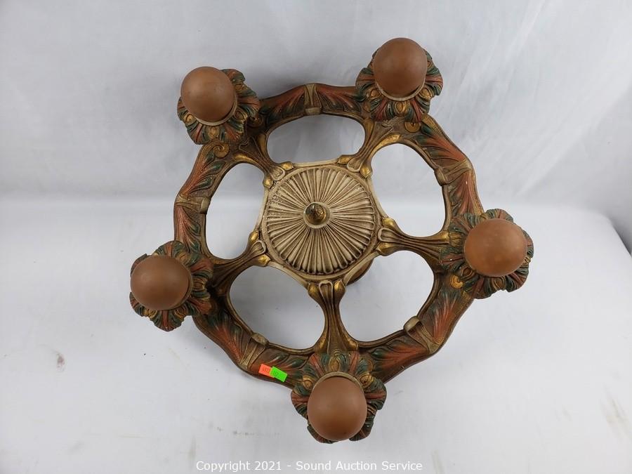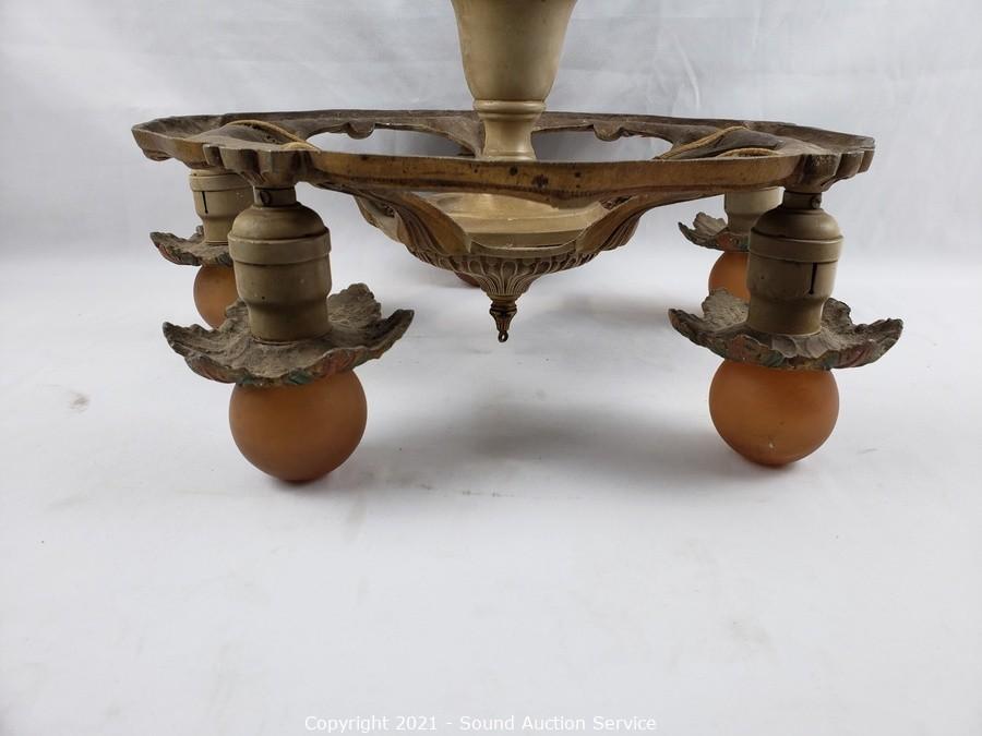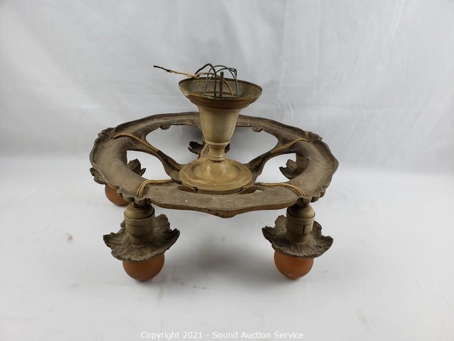 Lot #0157: Vintage Cast Metal 5-Light Ceiling Light